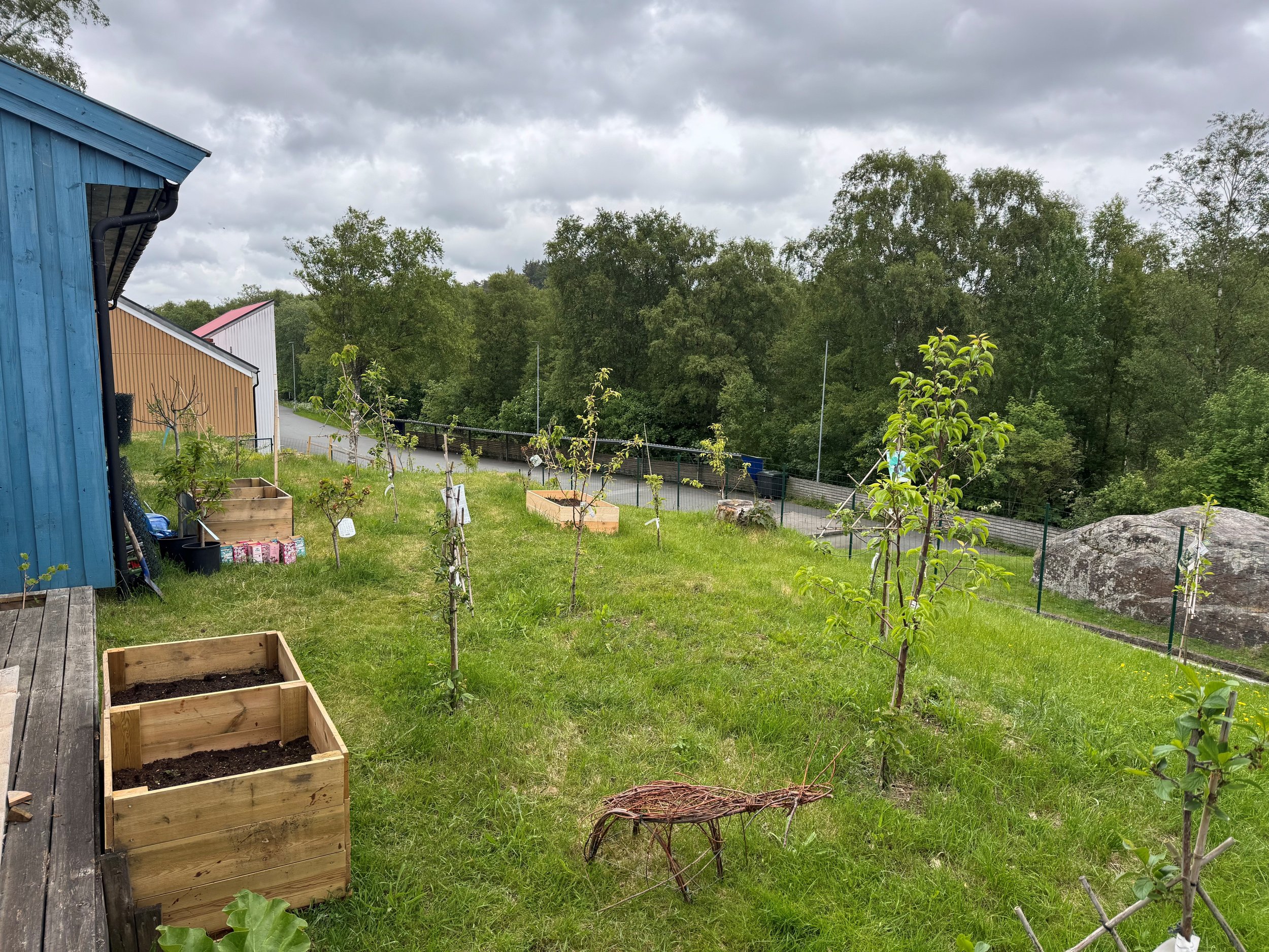 I tillegg til å dyrke poteter, gulrøtter, tomater, så har også skolen frukttrær. Produksjonen av frukt og grønt brukes i mat- og helsetimer.
